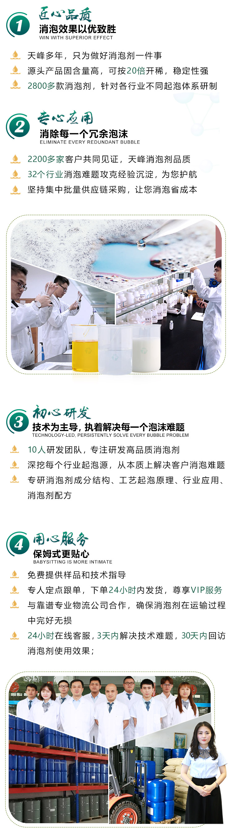 • 10人研發(fā)團隊,專注研發(fā)高品質消泡劑